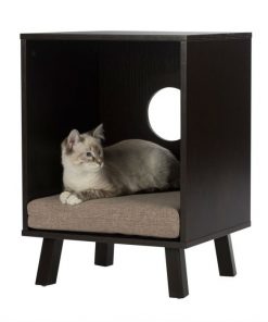 Sturdy Modern Cat Espresso End Table Cat Bed Cube Lounge
