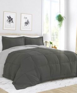 Full/Queen 3-Piece Microfiber Reversible Comforter Set in Grey / Light Grey