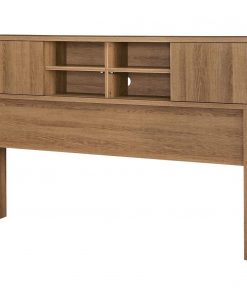 Queen size Farmhouse Storage Headboard in Rustic Light Brown Wood Finish