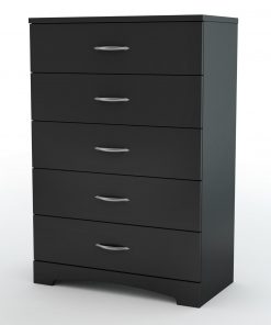 Modern 5-Drawer Bedroom Chest in Black Wood Finish
