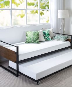 Twin size Metal Wood Daybed Frame with Roll Out Trundle Bed
