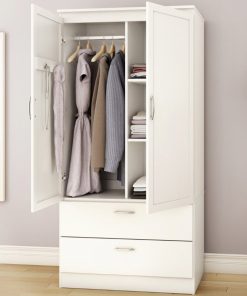 White Armoire Bedroom Clothes Storage Wardrobe Cabinet with 2 Drawers