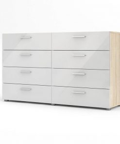 White Modern Bedroom 8-Drawer Double Dresser with Oak Finish Sides and Top