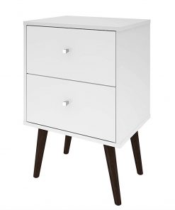 White Modern Mid-Century Style 2-Drawer Side Table Nightstand