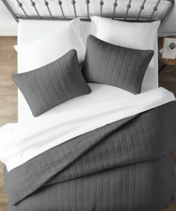 3 Piece Microfiber Farmhouse Coverlet Bedspread Set Grey, Full/Queen
