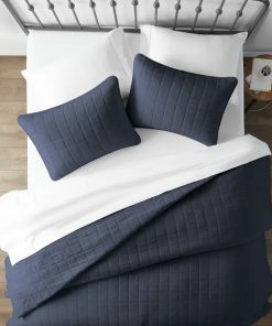 3 Piece Microfiber Farmhouse Coverlet Bedspread Set Navy, King/California King