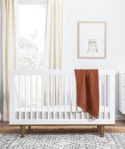 3-in-1 Modern Solid Wood Crib in White with Mid Century Style Legs in Walnut