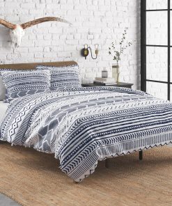 3 Piece Scandinavian Blue White Reversible Cotton Set in Full/Queen