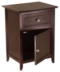 Antique Walnut Wood Finish 1-Drawer Bedroom Nightstand End Table Cabinet