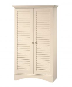 Antique White Finish Wardrobe Armoire Storage Cabinet with Louver Doors
