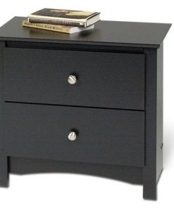 Black Two Drawer Bedroom Nightstand with Brushed Nickle Knobs