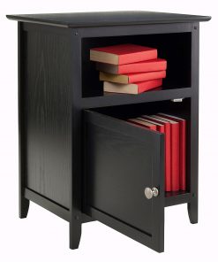 Black Wood X-Design End Table Nightstand with 3 Open Shelves
