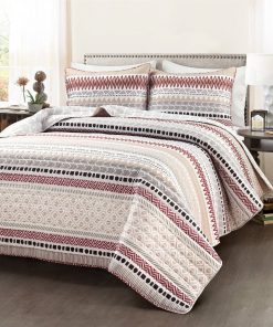 King Lightweight Red Purple Black Tan Desert Stripe Reversible 3 Piece Quilt Set