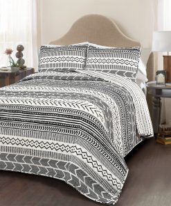 King 3 Piece Scandinavian Style Chevron Black White Reversible Cotton Quilt Set