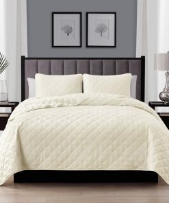 King CAL King 3-Piece Ivory Polyester Microfiber Reversible Diamond Quilt Set