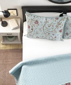 Twin XL 2 Piece Farmhouse Blue Teal Floral Vines Cotton Reversible Quilt Set