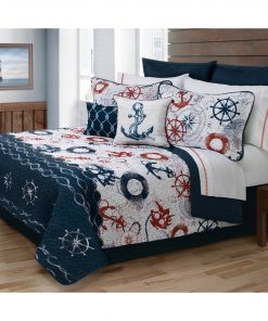 Twin Size Modern Coastal Anchor Polyester Reversible Quilt Set