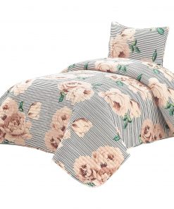 Twin/Twin XL Size Polyester Black White Striped Rose Floral 2 Piece Quilt Set