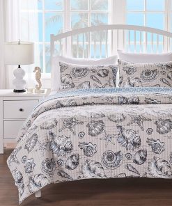 Twin/Twin XL size 2 Piece Microfiber Beach Shells Coastal Reversible Quilt Set