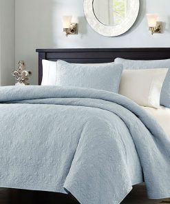 Full / Queen size Quilted Bedspread Coverlet with 2 Shams in Light Blue