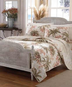 Full / Queen Cotton Coastal Palm Tree Floral 3 Piece Reversible Quilt Set