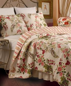 Full / Queen size Piece 100% Cotton Quilt Set Crimson Clover Floral