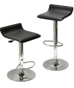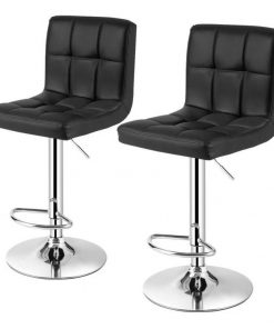 Set of 2 Modern Air-Lift Adjustable Bar Stools with Black Seat