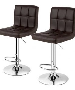 Set of 2 Modern Adjustable Height Barstools with Brown PU Leather Swivel Seat