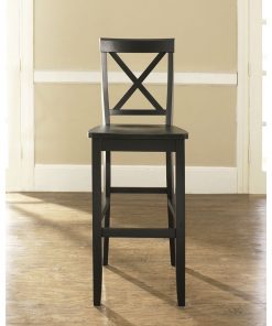 Set of 2 – X-Back Solid Wood 30-inch Barstools in Black Finish