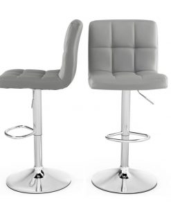 Set of 2 Modern Adjustable Height Barstools w/ Comfortable Grey PU Leather Seat