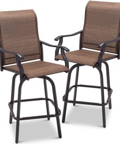 Set of 2 Brown All-Weather Mesh Swivel Barstools