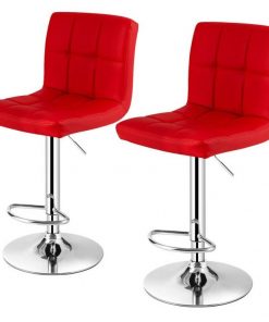 Set of 2 Modern Adjustable Height Barstools w/ Comfortable Red PU Leather Seat