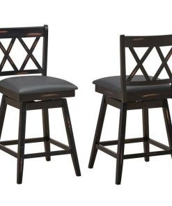Set of 2 Black Wood 24-in Counter Height Farmhouse Swivel Cushion Seat Barstools