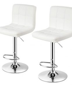 Set of 2 Modern Adjustable Height Bar Stool with White PU Leather Swivel Seat