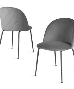Set of 2 Modern Grey Velvet Upholstered Dining Chair with Metal Legs