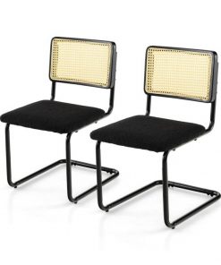Set of 2 – Modern Mid-Century Black Dining Chair with Beige Rattan Backrest