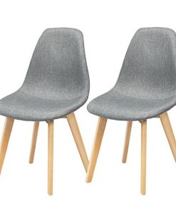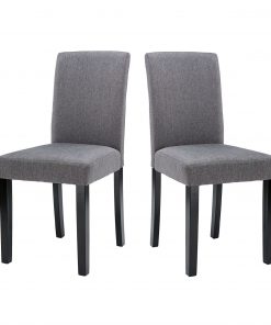 Set of 2 – Grey Fabric Dining Chairs with Black Wood Legs