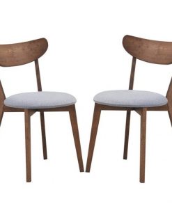 Set of 2 Modern Farmhouse Solid Wood Dining Chair with Grey Fabric Padded Seat