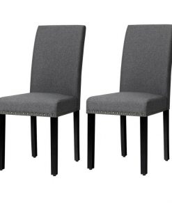 Set of 2 Grey Linen Upholstered Nailhead Dining Chair – 330 lbs. Weight Capacity