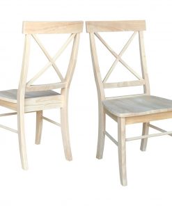 Set of 2 – Unfinished Wood Dining Chairs with X-Back Seat Backrest
