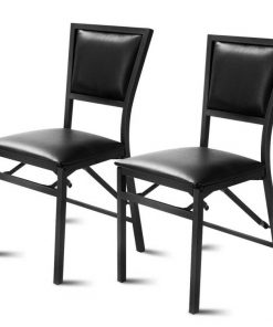 Set of 2 – Modern Black Metal Folding Dining Chairs with PU Leather Seat Cushion