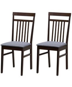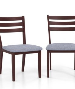 Set of 2 – Classic Sturdy Wood Dining Chair with Grey Upholstered Seat Cushion