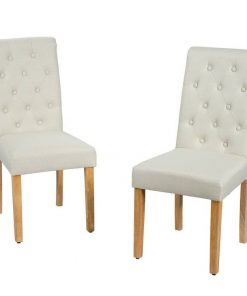 Set of 2 Beige Linen Button Tufted Dining Chair with Wood Legs