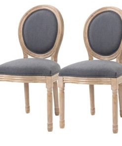 Set of 2 Vintage Upholstered Armless Curved Back Dining Chairs Grey Wash
