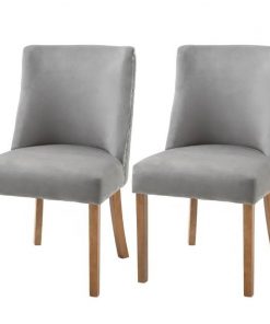 Set of 2 Modern Nailhead Diamond Stitch Upholstered Dining Chairs in Light Grey