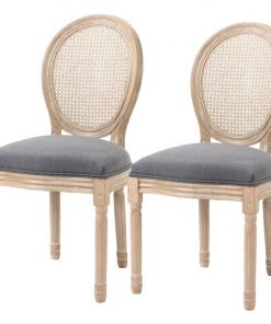 Set of 2 Vintage Upholstered Armless Rattan Back Dining Chairs Grey Wash