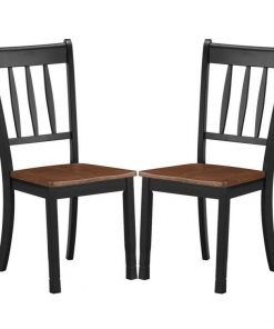 Set of 2 Solid Wood Black Mission Style Armless Dining Chairs with Brown Seat