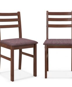 Set of 2 Modern Mid-Century Brown Wood Dining Chair with Padded Linen Seat