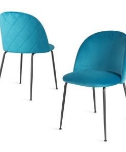 Set of 2 Modern Teal Blue Green Velvet Upholstered Dining Chair with Metal Legs