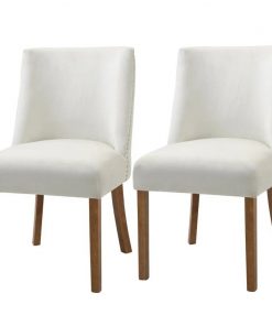 Set of 2 Modern Nailhead Diamond Stitch Upholstered Dining Chairs Beige White
